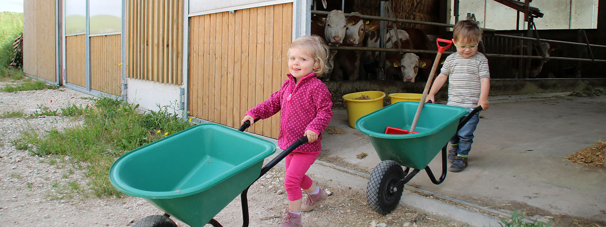 Einen echten Wohlfühl-Urlaub bietet Ihnen der Ferienhof Rohrer. Zwei liebevoll eingerichtete Ferienwohnungen bieten dafür eine ideale Basis. Starten Sie mit einem leckeren, reichhaltigen Frühstück mit Zutaten direkt vom Hof. Genießen Sie die Ruhe auf einem gemütlichen Liegestuhl, während Ihre Kinder auf Entdeckungstour gehen. Kühe, Kälber, Hühner, Hasen, eine Katze und zwei Pferde freuen sich auf lieben Besuch. In unserem Garten können die Kleinsten Sand spielen und rutschen, während sich die größeren Kinder mit unserem großen Fuhrpark aus Tretrollern und Kettcars vergnügen können. Genießen Sie ein frisch zubereitetes Abendessen auf Balkon oder Terrasse. Und lassen Sie den Abend in unserem Karb-Stüberl gemütlich ausklingen.