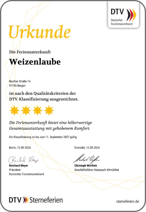 Die Weizenlaube bietet Ihnen gemütlichen Wohnkomfort und eine Atmosphäre zum Wohlfühlen. Hier können Sie sich zurückziehen, entspannen und den Blick ins Grüne genießen.